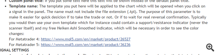As mentioned in the product's blog the objects will not be drawn on the chart which will open up when you click on a signal in the panel. You will need to first install my free Heiken Ashi Smoohted indicator to the chart template. Please see the screenshot below which is from the blog. Please don't hesitate to contact me again if you are unsure how to create a chart template. I will then guide you through it.