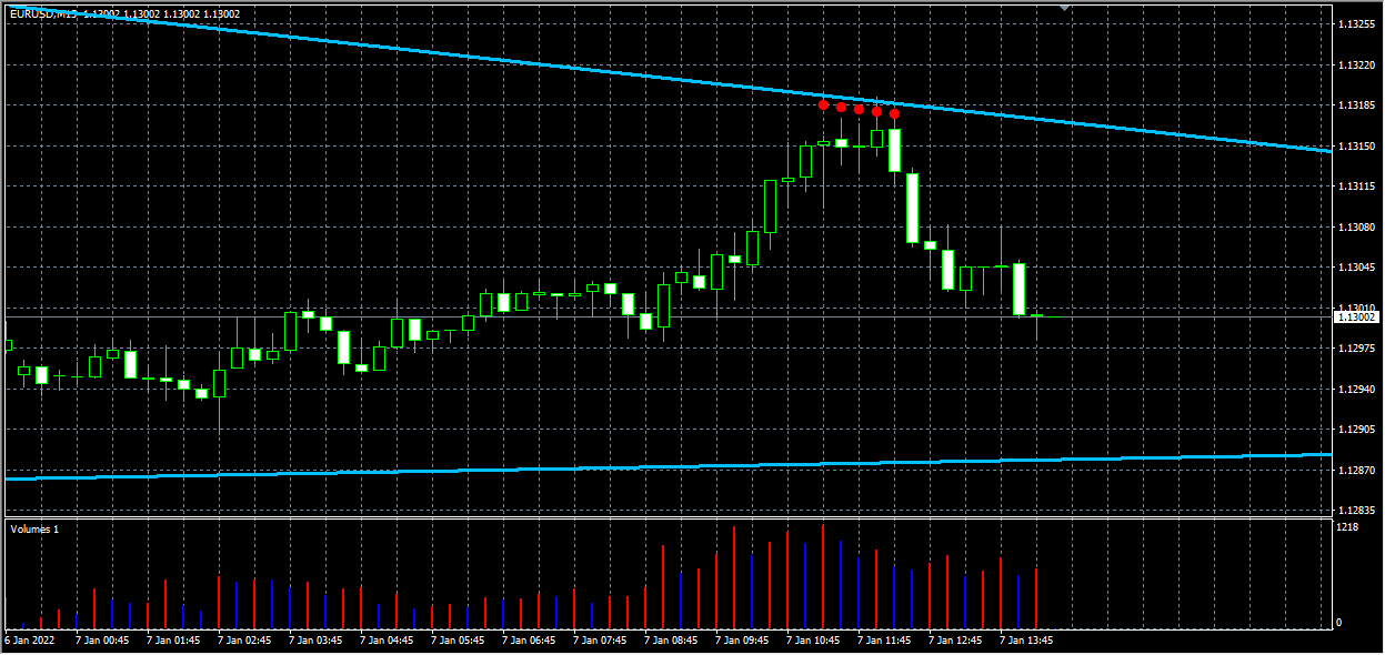 If we select Resistance Up as true then when the price is near the upper line and this line is in an upward direction the signal will be made and be displayed as "Upper Resistance"