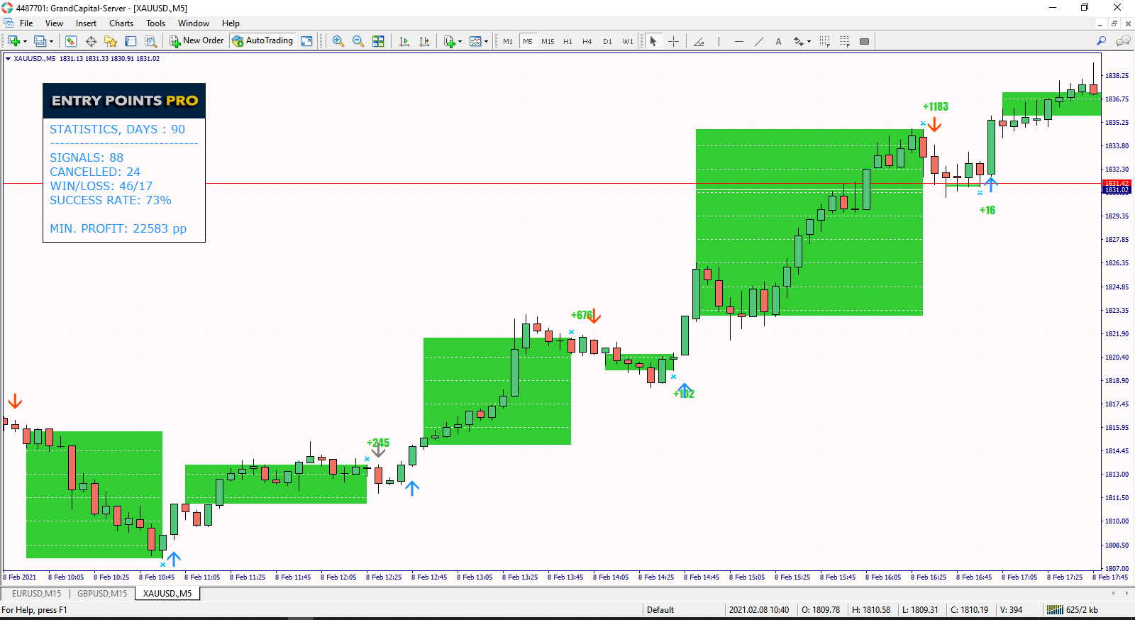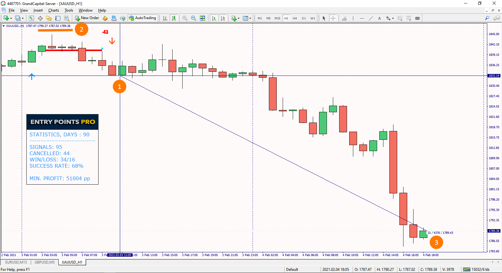 An example of a trade based on the Entry Points Pro indicator.