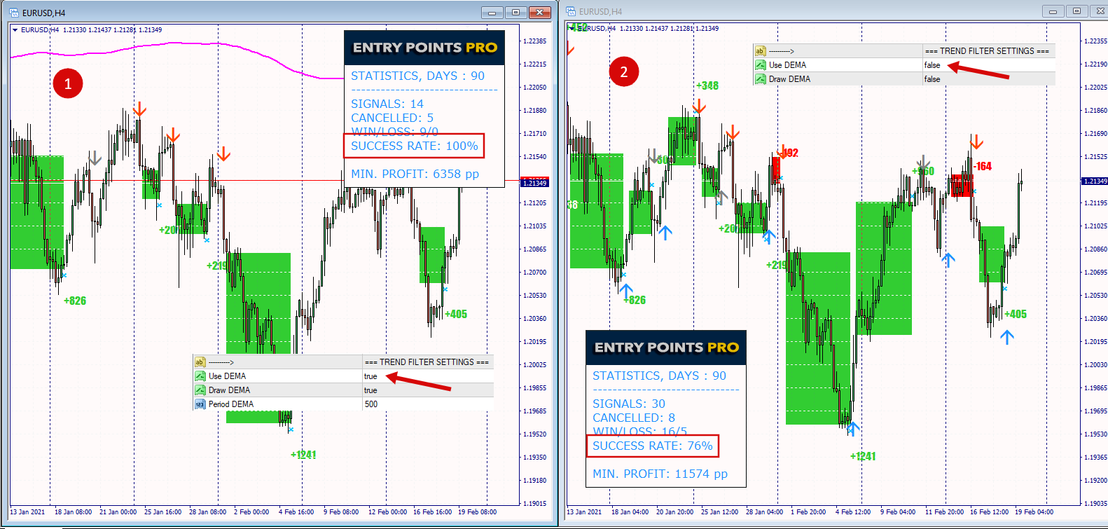 🔺Just turn on DEMA filtering and follow the trend. Get up to 100% profitable trades!