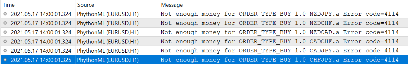 If you also have this message, then you should first drive all pairs using the PhythonML_AllPairs_Model1.set setting, and then take the settings with partially trading pairs of 28 by type PhythonML_Model134, PhythonML_Model1.set, then everything works ok
