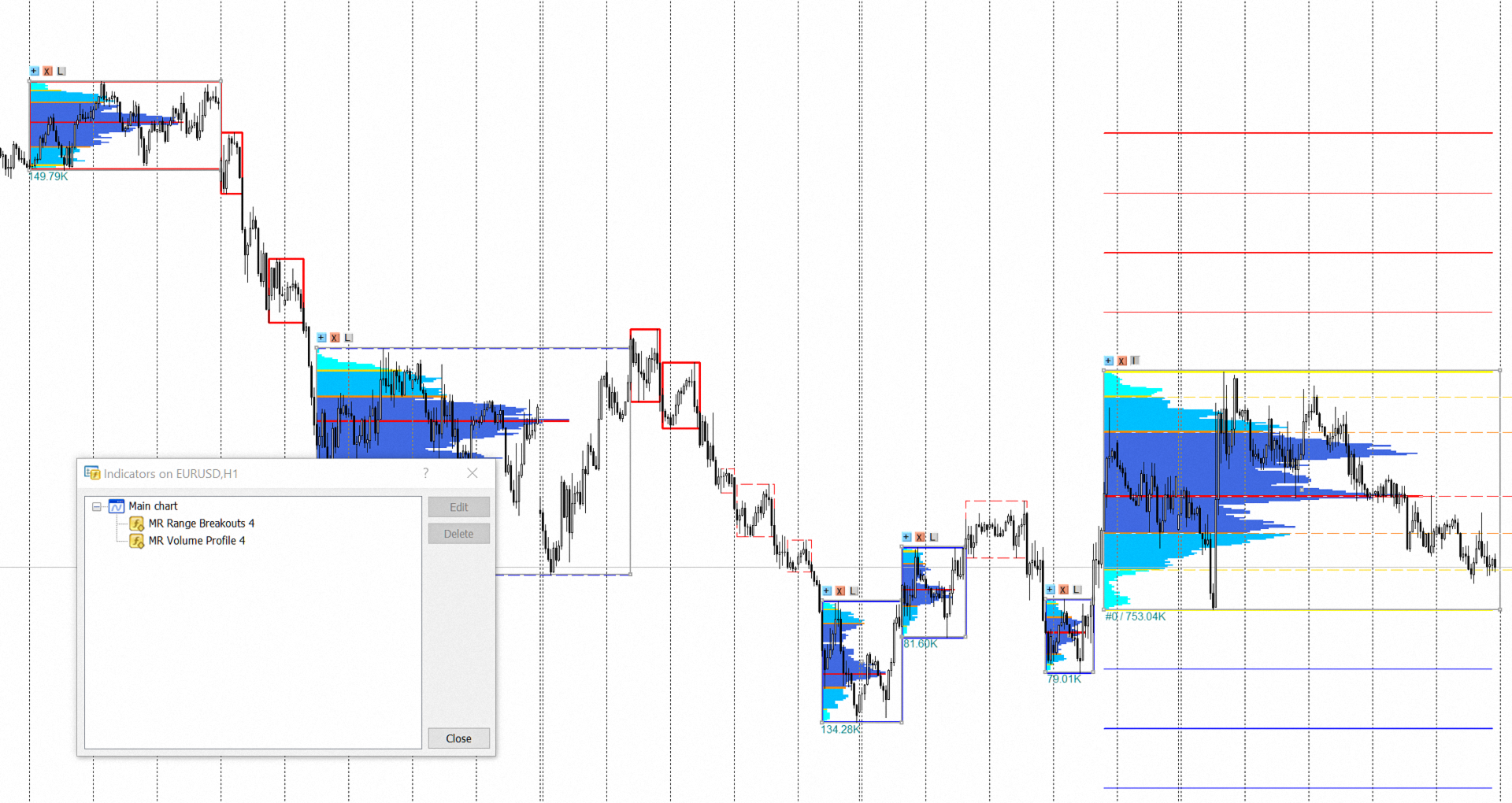 - In combination with the "MR Reversal Patterns 4" indicator, you can see how buyers and sellers are distributed in the "Range". Since every trader waits for confirmation that their market entry is correct, the appearance of "Reversal Patterns" in the "Range" forms the accumulation of open positions in a place that we define as a "Point of Control" in the Volume Profile of the Range ". During the movement of the price in a trend, you can see how "Balances" are formed according to the "Auction Market Theory".