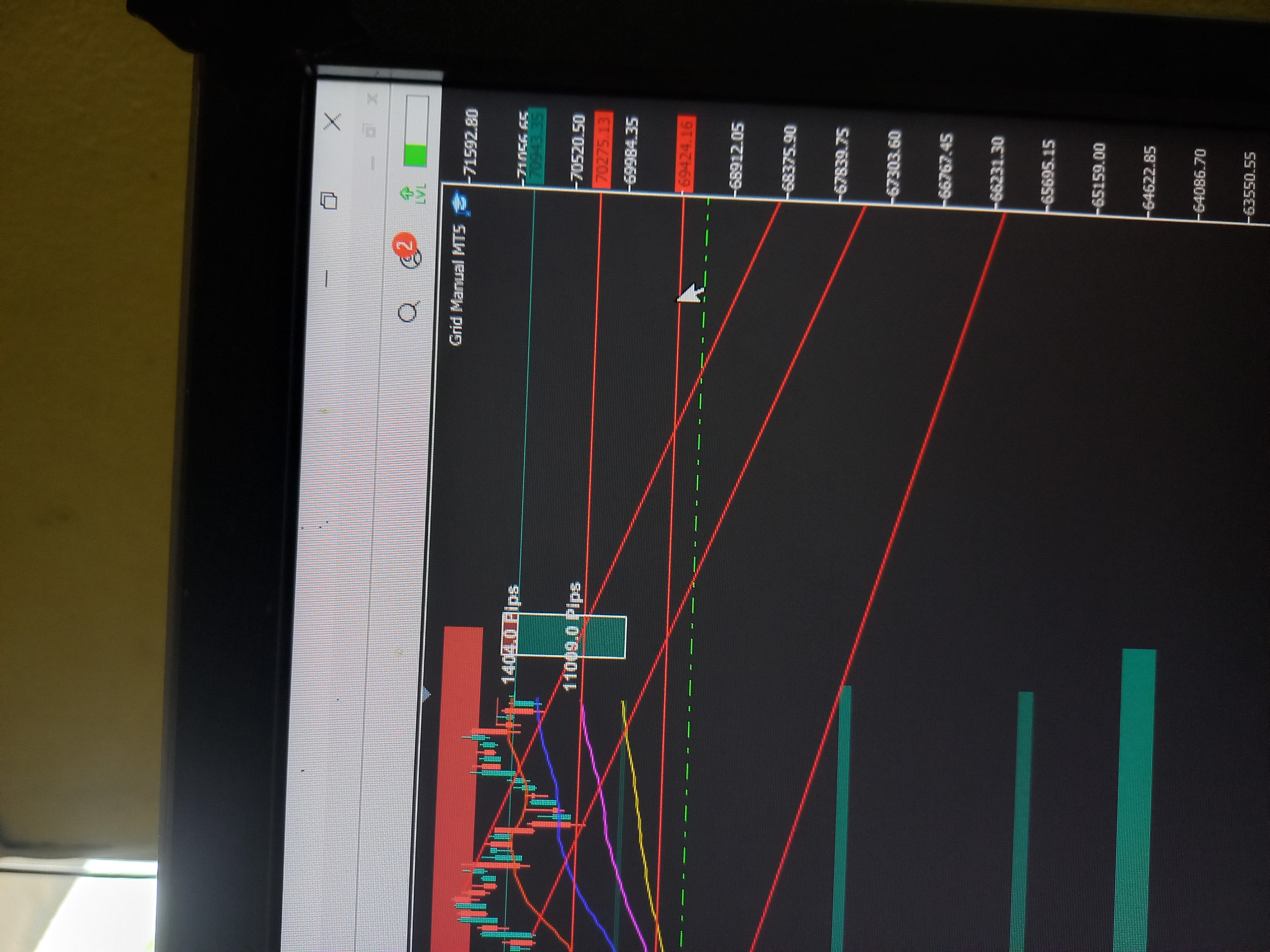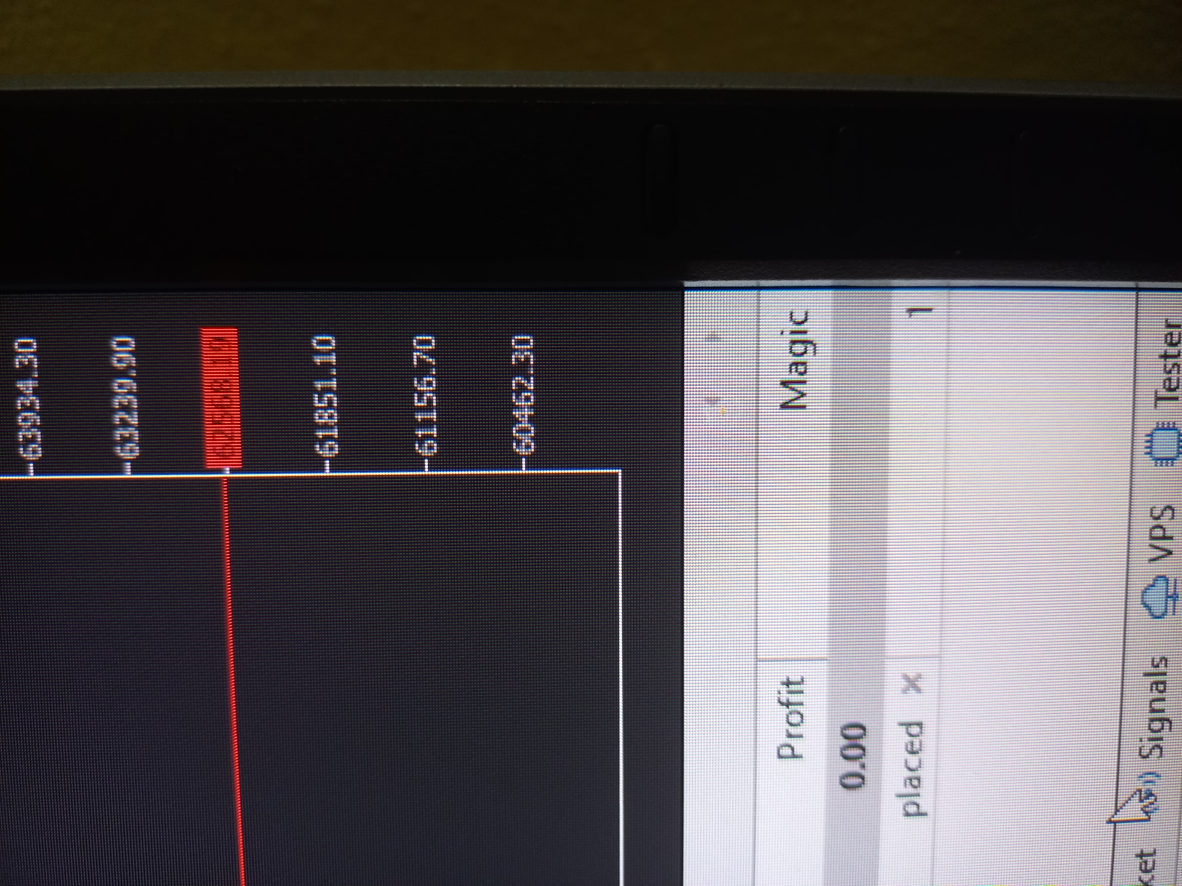 4) Show me the Trading tab of the terminal, where I can see that the order doesn't have a Take Profit and Stop Loss.