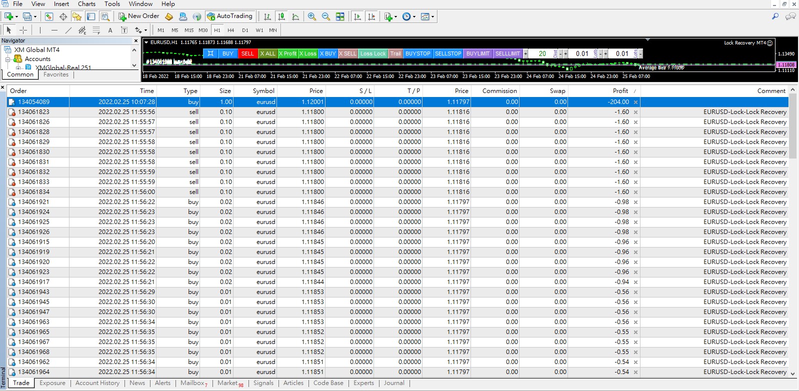 Here are the complete simulation results, Lock recovery performs Lock and at the same time recovers a loss position with auto close partial