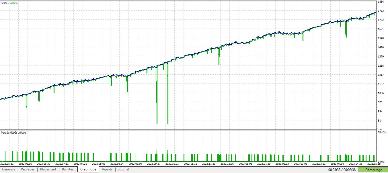 Je viens de le tester sur les deux paires. Le résultat n'est pas bon pour janvier 2022 à mai 2023. Peut-être besoin de nouveaux paramètres pour optimiser.