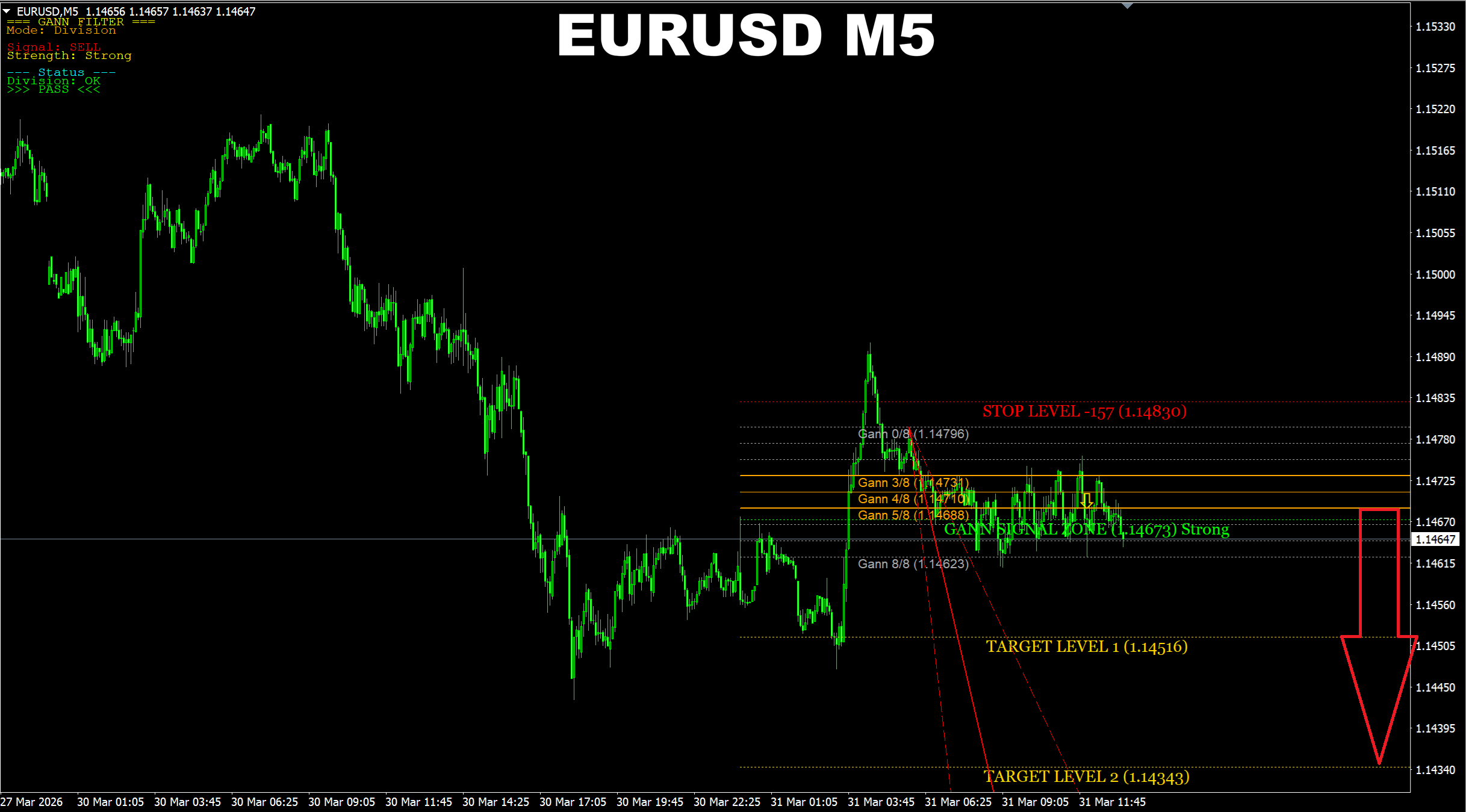 Gann Made Easy. EURUSD M5. Update on the SELL signal I provided earlier today. Price has successfully reached the predicted target.