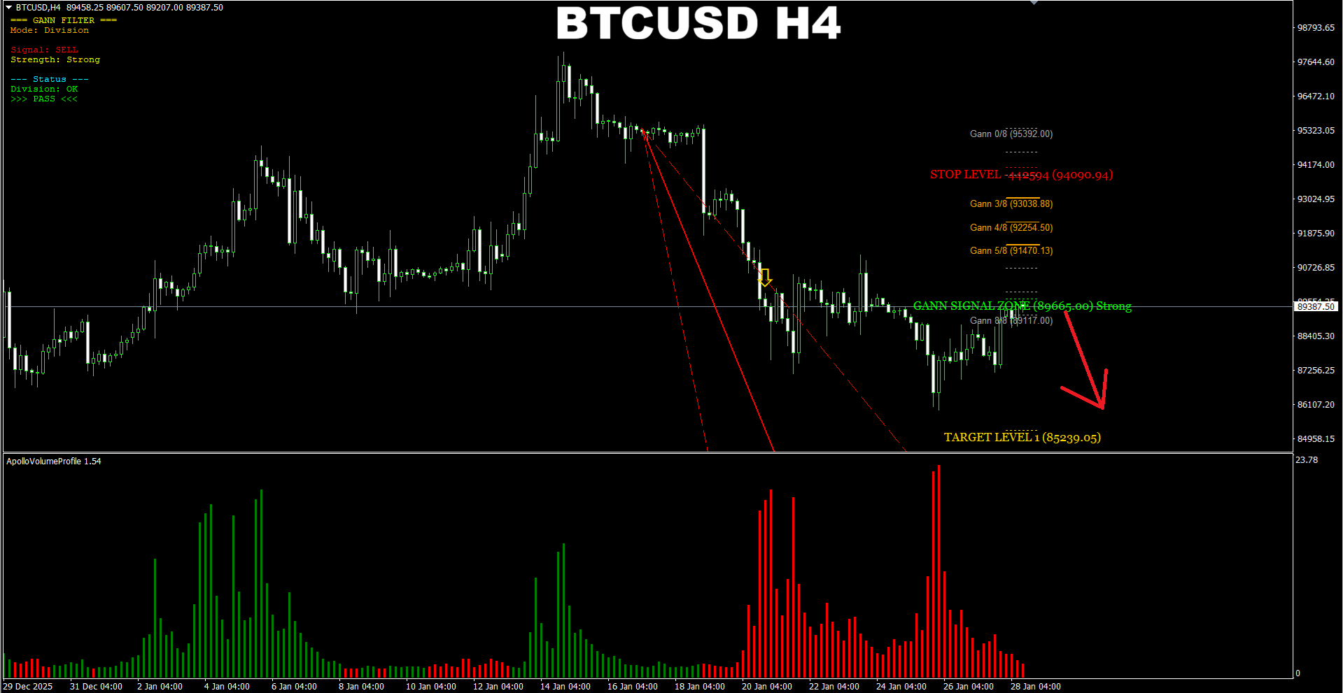 Currency Strength Wizard. BTCUSD H4. Update on current market. It seems the price is ready for a new SELL swing.