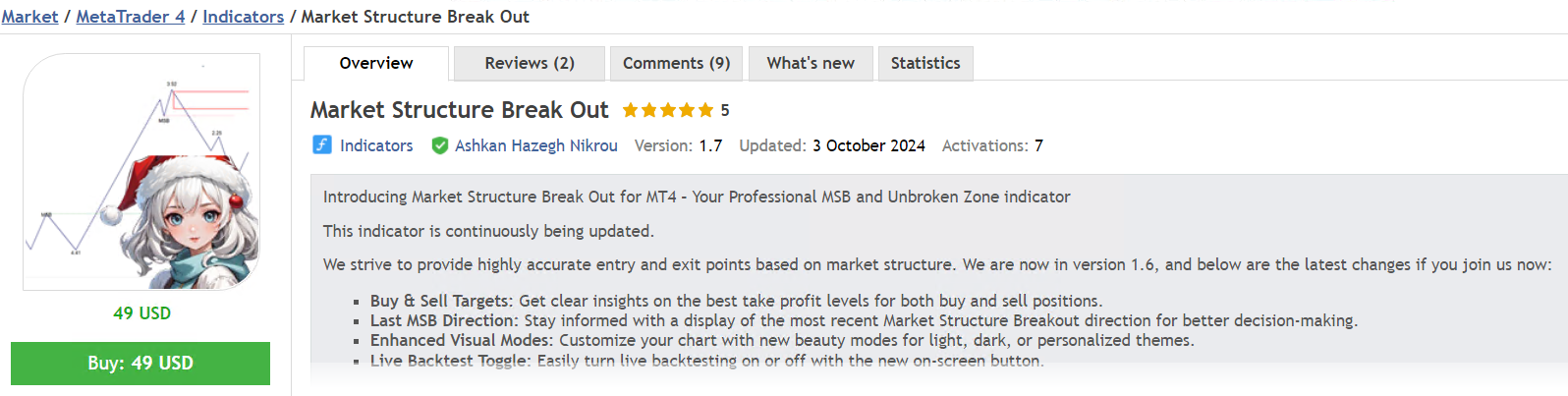 Retrace Signals on Market Structure Break Out is most power full , this is Back Test Mode of this indicator that show nice buy signal on gold (XAUUSD) , attention to structure, attention to green and red zones, attention and MSB and finally signals