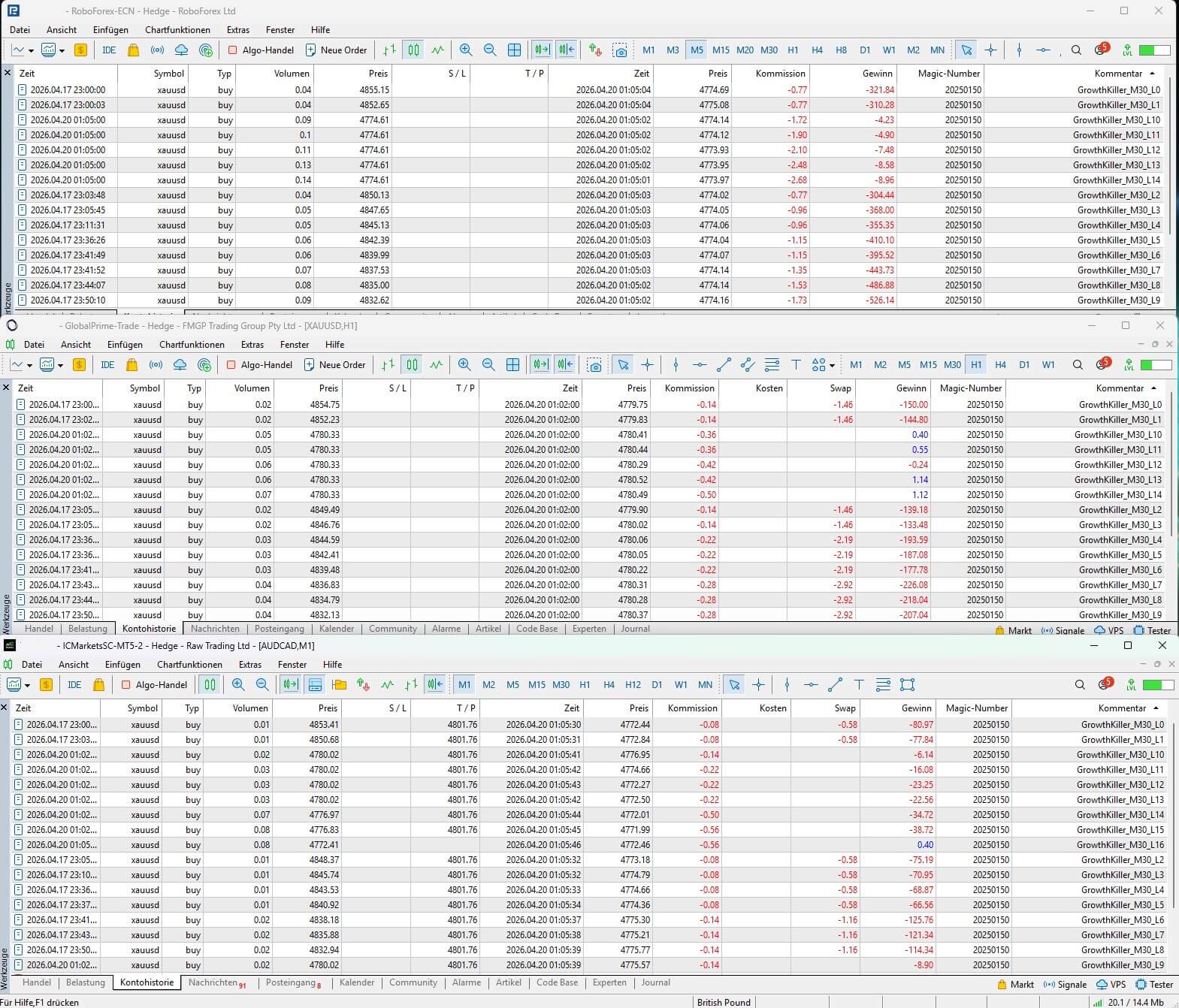 The EA took a trade on 2 IC Markets Accounts and 1 Roboforex Account.