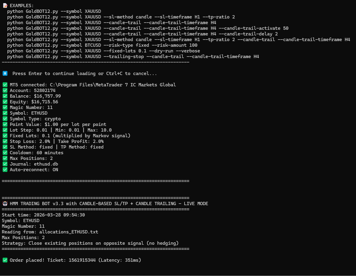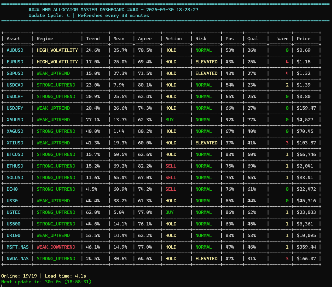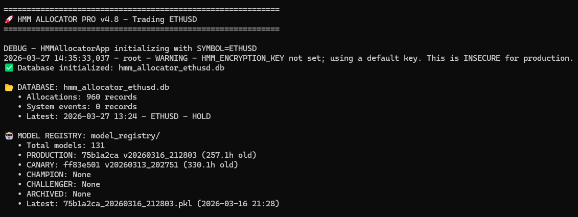 The combination of HMM regime detection, multi-asset deployment, staged model deployment and comprehensive risk management puts this system far beyond what most traders ever build.