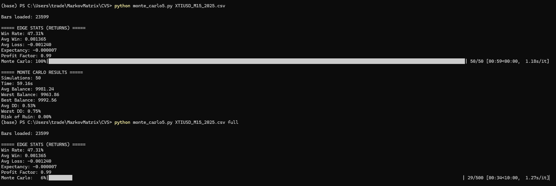 Monte Carlo Simulation Named after the famous Monte Carlo Casino in Monaco because it relies on randomness and probability. What It Actually Is Monte Carlo simulation is mathematical risk analysis, not gambling. Gambling is betting without knowing the odds, while Monte Carlo is calculating the odds before you bet. Gamblers hope for luck, but traders using Monte Carlo know exactly what bad luck looks like before it happens. It removes hope and replaces it with probability. You don’t wonder, “What if I hit a losing streak?” You know, “There’s a 5% chance I lose 10 trades in a row.” You don’t panic when a drawdown hits. You expected it. You sized your positions so you survive it. Despite the casino name, Monte Carlo is one of the most serious, scientific tools in finance. Professionals use it specifically to avoid gambling with their money.
