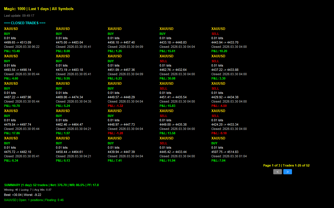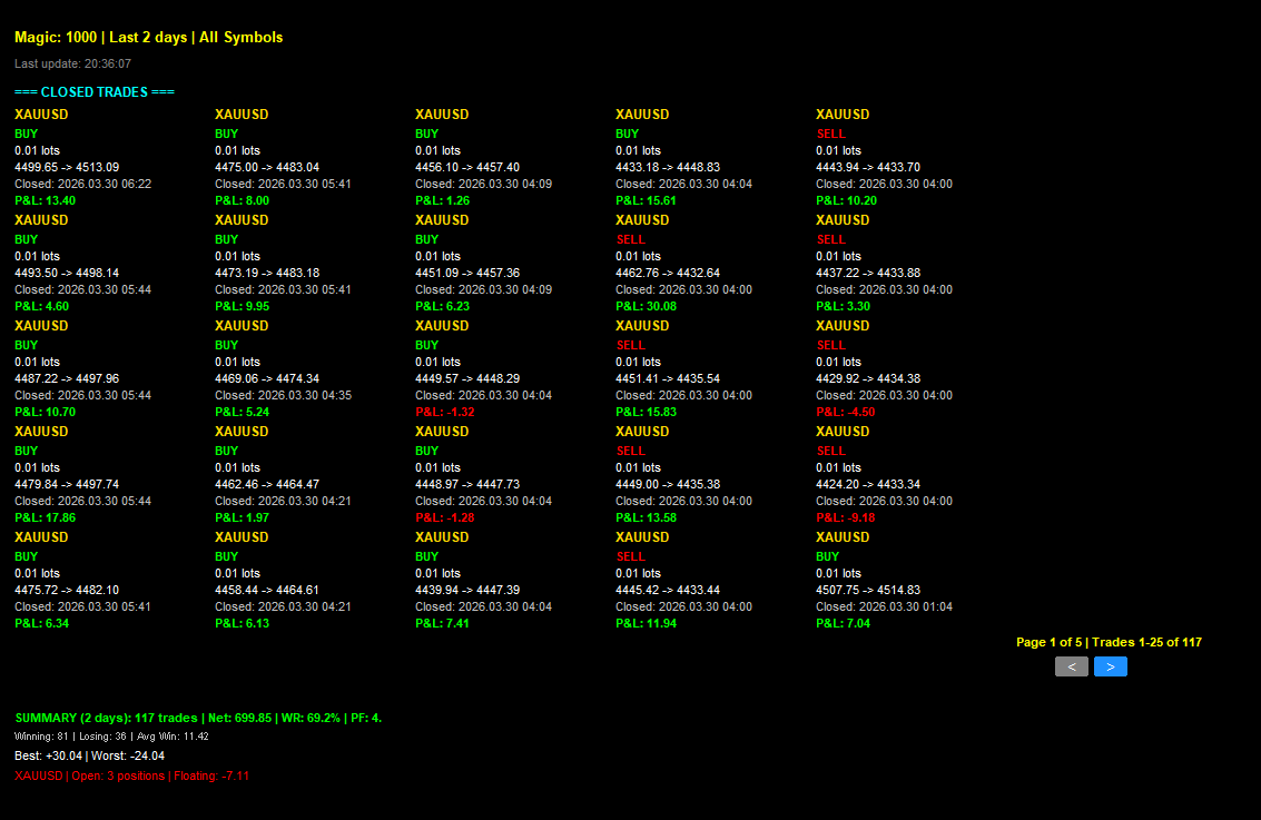 From high-frequency scalping to trend-following strategies, my EAs are built to execute trades with speed, accuracy, and discipline—freeing you from emotional reactions and enabling you to trade with confidence.