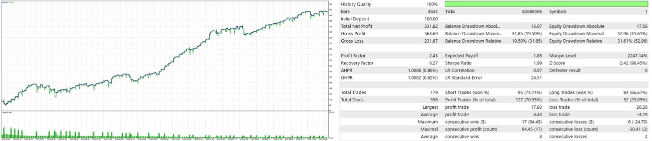 Hestia EA for EURAUD (H4 Timeframe) – 22.6% monthly gain, PF 2.08, 63.0% win rate