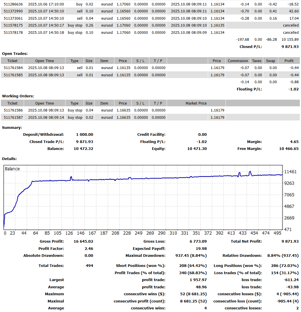 SuperMax MT5 is a fully automated, intelligent expert advisor with advanced mechanisms, using a dynamic system to measure market volatility to be consistent with the timing of market entry and exit. The mechanism of this system is based on the principle of mean reversion and momentum of market price. Rely on scalping and recovery strategies with optimal trading frequency and can still work well in all market conditions, be it trend or sideways, can be traded full time in any condition