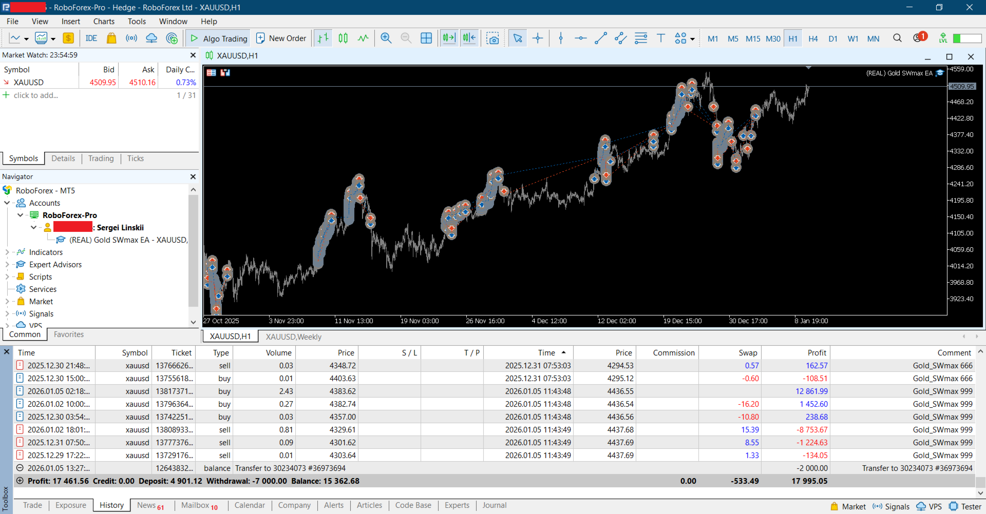 Gold SWmax EA in the real account is the leader among my EA's...152% real profit in the real account for 4 months...