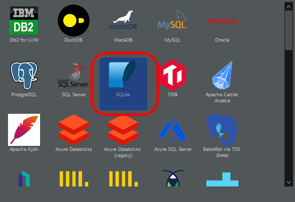 Aqui você deverá selecionar o tipo de banco de dados a ser visualizado. Lembre-se de que o nosso banco de dados é do tipo SQLite. Então procure ele e o selecione como mostrado logo abaixo.