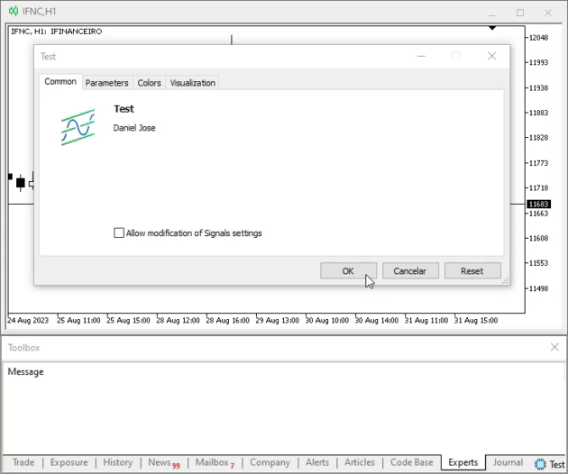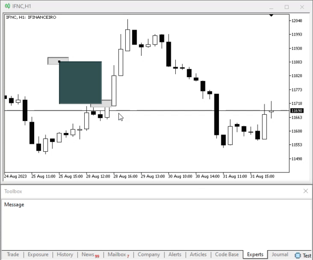 Perceba uma coisa neste código no evento CHARTEVENT_OBJECT_CLICK. Ele é exatamente o mesmo que era visto no artigo anterior. Só que ele estava no evento CHARTEVENT_MOUSE_MOVE. Mas será que não teremos problemas, aqui? No bem da verdade não. Já que antes do evento de clique teremos um evento de movimento. E quando o clique acontece, teremos verificado se ele é ou não valido. E somente teremos uma execução como era visto no artigo anterior. Se e somente se, tivermos um clique valido, e o nome do objeto corresponder ao nome que estamos tratando neste momento. Ou seja, o objeto que representa o botão de fechar. Todo resto já foi densamente explicado, não necessitando de explicações extras.
