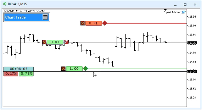 | Experts\Expert Advisor.mq5 | Demonstra a interação entre o Chart Trade e o Expert Advisor (É necessário o Mouse Study para interação) |