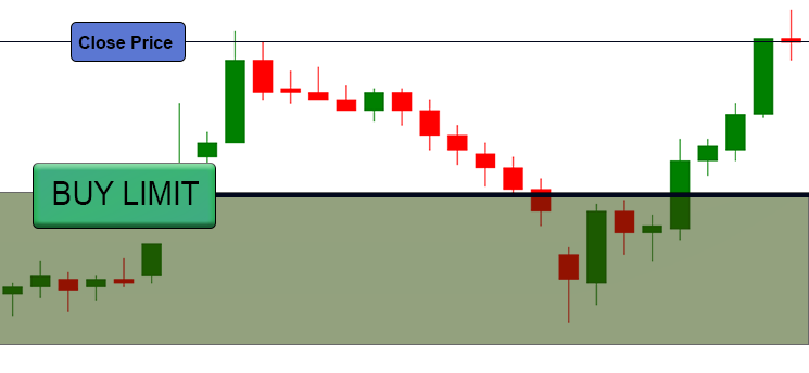 Este é o primeiro tipo de ordem pendente. Ou seja, uma ordem do tipo BUY LIMIT. O que esta ordem faz é o seguinte: Quando o preço de fechamento, entrar na zona VERDE, ou seja, quando ele for menor ou igual ao preço onde a ordem está, será feita uma compra a mercado. Isto pode ser simulado, fazendo o seguinte teste em OnCalculate: