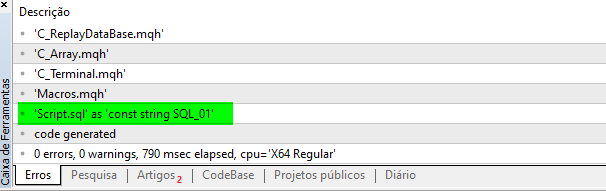 No constructor da classe C_InServer, dizemos ao SQL, para criar uma tabela. Como nosso código permite integrar, ou até mesmo executar scripts SQL, fora do executável principal. Vamos mudar o código para podermos editar o script SQL em um arquivo. Porém vamos tornar este script um recurso do executável. Já mostrei como fazer isto antes. Dê uma olhada nos artigos sobre SQL nesta sequência. Mas o código a ser modificado é visto logo abaixo. Já com a sua nova aparência.