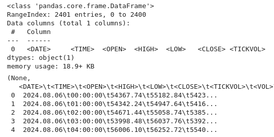 import pandas as pd # Load the uploaded BTC 1H CSV file file_path = '/home/int_junkie/Documents/DataVisuals/BTCUSD_H1.csv' btc_data = pd.read_csv(file_path) # Display basic information about the dataset btc_data_info = btc_data.info() btc_data_head = btc_data.head() btc_data_info, btc_data_head