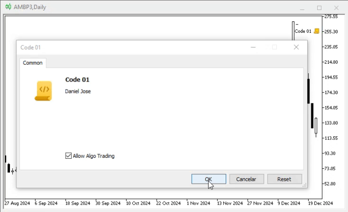01. //+------------------------------------------------------------------+ 02. #property copyright "Daniel Jose" 03. #property description "Demo" 04. //+------------------------------------------------------------------+ 05. #define def_NameChannel "Demo" 06. //+------------------------------------------------------------------+ 07. int OnInit() 08. { 09. ObjectCreate(0, def_NameChannel, OBJ_REGRESSION, 0, 0, 0); 10. 11. return INIT_SUCCEEDED; 12. }; 13. //+------------------------------------------------------------------+ 14. int OnCalculate(const int rates_total, const int prev_calculated, const int begin, const double &price[]) 15. { 16. return rates_total; 17. }; 18. //+------------------------------------------------------------------+ 19. void OnDeinit(const int reason) 20. { 21. ObjectDelete(0, def_NameChannel); 22. ChartRedraw(); 23. }; 24. //+------------------------------------------------------------------+