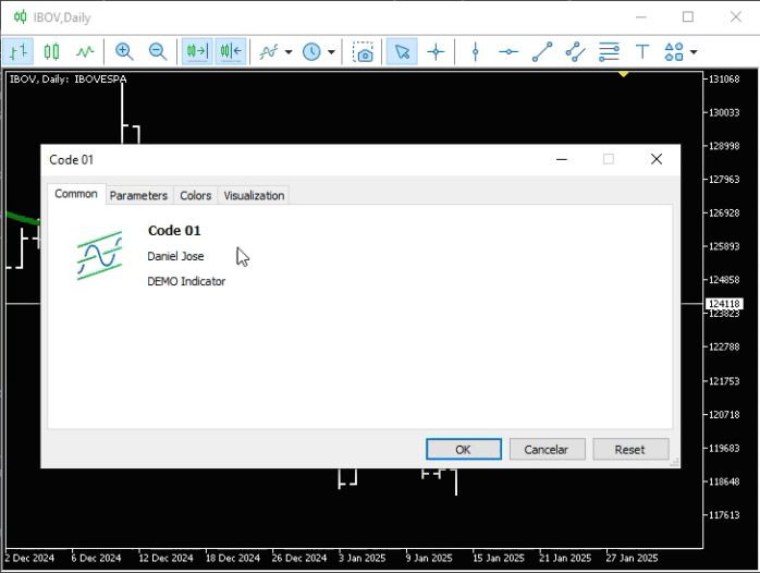No artigo Do básico ao intermediário: Indicador (III), mostrei como isto poderia ser feito. No entanto, ali acabei me esquecendo de mostrar como mudar esta informação destacada na imagem 05. E fazer isto, é algo bastante simples e direto. Tudo que precisamos fazer é adicionar ao código o que é visto na linha 14 do fragmento logo abaixo.