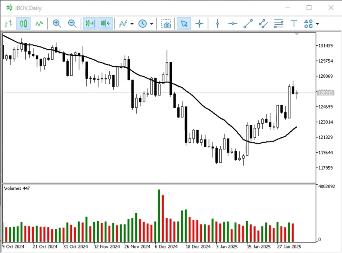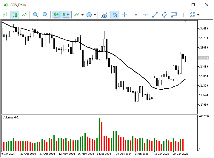 Para tal, vamos fazer agora o seguinte: Iremos adicionar um indicador de volume, conforme pode ser visto logo abaixo.