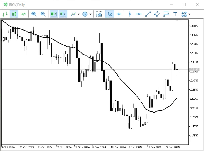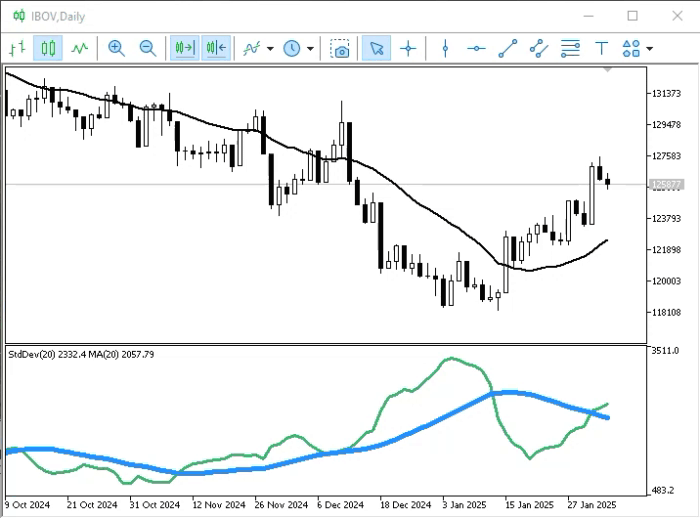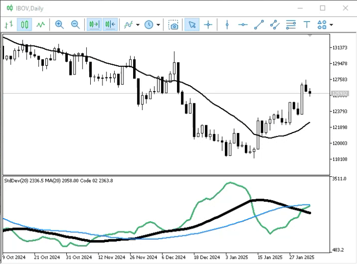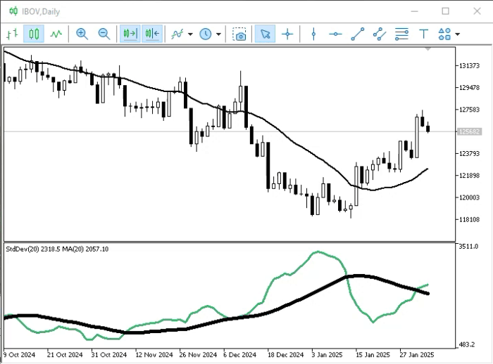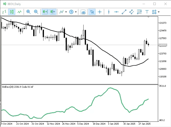 Agora vamos adicionar este código 01 ao indicador de volume. Assim poderemos observar a média de volume nos últimos 20 períodos. Faremos isto com base na animação logo abaixo.