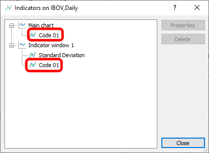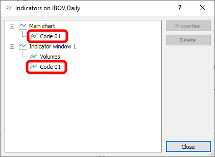 Note que nesta imagem 03, temos dois indicadores fazendo uso do código 01. Preste atenção a isto, pois este tipo de informação será muito útil depois. Agora vamos adicionar um outro indicador, como mostrado na animação logo na sequência.