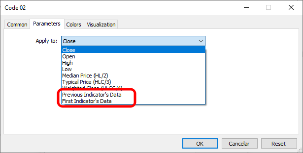 Quando você vai adicionar um indicador qualquer em uma sub janela. Onde este indicador deverá usar em seus cálculos internos, valores previamente calculados e já presentes na sub janela. Você precisará ver e entender isto que é mostrado na imagem 08.