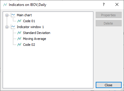 Note que a resposta padrão do MetaTrader 5, foi simplesmente remover os indicadores que estão ligados a este que estamos removendo. Isto de fato é algo bem mais prático e simples, do que tentar criar algum método maluco para que os demais indicadores possam a vir a ser mantidos no gráfico. A forma como o MetaTrader 5, lida com este tipo de situação, além de ser limpa, e bastante elegante. Já que não deixa margem para possíveis interpretações do que está sendo calculado em cada um dos indicadores.