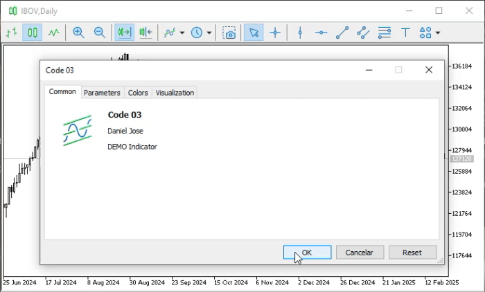 Ok, originalmente os códigos vistos lá naquele artigo, estão sendo replicados logo abaixo.01. //+------------------------------------------------------------------+ 02. #property copyright "Daniel Jose" 03. //+------------------------------------------------------------------+ 04. #property description "DEMO Indicator" 05. //+------------------------------------------------------------------+ 06. #property indicator_separate_window 07. #property indicator_height 50 08. #property indicator_plots 0 09. //+------------------------------------------------------------------+ 10. int OnInit(void) 11. { 12. IndicatorSetString(INDICATOR_SHORTNAME, "Test 123."); 13. 14. return INIT_SUCCEEDED; 15. }; 16. //+------------------------------------------------------------------+ 17. int OnCalculate(const int rates_total, const int prev_calculated, const int begin, const double &price[]) 18. { 19. return rates_total; 20. }; 21. //+------------------------------------------------------------------+
