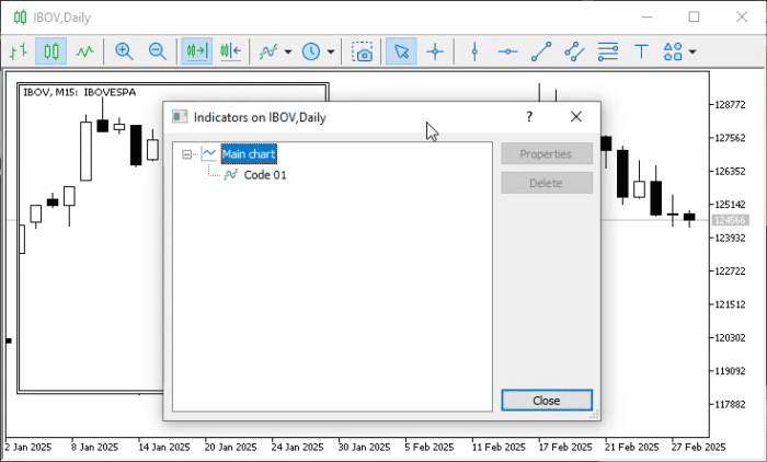 No artigo Do básico ao intermediário: Sub Janelas (III), mostrei como poderíamos visualizar quais indicadores estão presentes em um determinado gráfico. Assim, caso você tenha dúvidas a respeito do que será visto aqui, veja o referido artigo para mais detalhes. Ok, agora vamos a parte realmente divertida do artigo. E para isto, vamos começar pelo código visto logo abaixo.