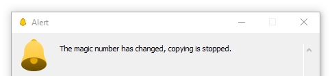 O Trade Copier possui funções que ajudam a evitar operações errôneas. Quando essas funções são acionadas, o copiador exibe um Alerta no gráfico com um aviso: