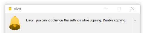 | Você está tentando alterar as configurações sem desabilitar o processo de cópia. Desabilite a cópia antes de alterar as configurações! |