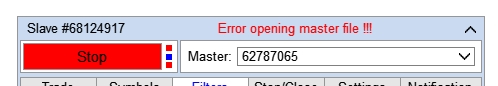 | O Trade Copier não conseguiu abrir ou encontrar o arquivo Master. Este erro pode ocorrer nos seguintes casos: