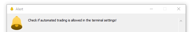 | A negociação automática está desativada no terminal. Para que o Trade Copier possa realizar operações de negociação, você precisa habilitar a negociação automática no terminal. Para isso, clique no botão "Negociação Automática" para MT4 ou "Negociação por Algoritmo" para MT5. |