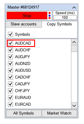 Se o símbolo desejado não estiver na lista, atualize a lista clicando no botão "Todos os símbolos" e habilite a cópia deste símbolo.