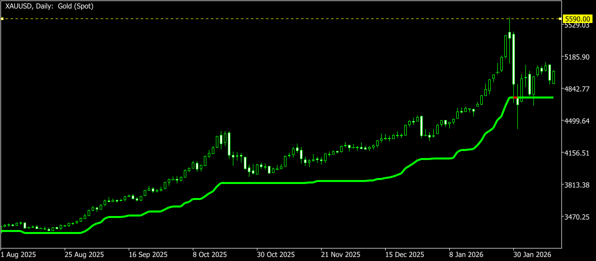 O ouro acaba de atingir US$ 5.590 — uma máxima histórica. E isso não aconteceu por acaso. O gráfico conta a história: uma subida constante desde agosto de 2025, acelerando fortemente no início de 2026. Um grande catalisador? A pressão renovada de Donald Trump por taxas de juros mais baixas.