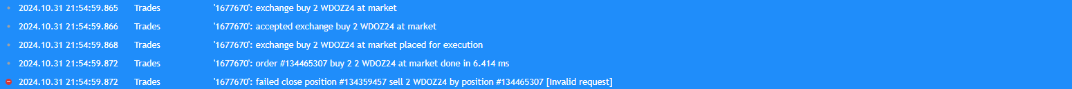closeRequest.position_by = openResult.deal;Voce esta pedindo pra fechar a posicao com o id de uma ordem, o que me parece ilegal já que a ordem não necessariamente foi executada. O deal parece fazer mais sentido. Também falar que o type filling sendo FOK deveria ter um teste para ver que o negocio foi fechado, já que é mais alta a possibilidade de não ter sido por conta do FOK. Se ele não foi, não vai existir ordem e nem negocio.