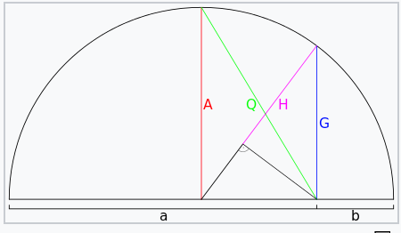 Exploraremos essas múltiplas aplicações ou variantes dentro de uma categoria especial de 3 Médias Móveis (MA) chamada Médias Pitagóricas. As 3 MAs sob esse nome são Média Aritmética(AM), Média Geométrica(GM) e Média Harmônica(HM). A primeira delas, a média aritmética, é o que todos pensam inicialmente ao mencionar MA. É simplesmente a média de qualquer número de valores em um conjunto. A Wikipedia apresenta um resumo muito interessante dessas 3 médias em um diagrama. Ele é compartilhado abaixo: