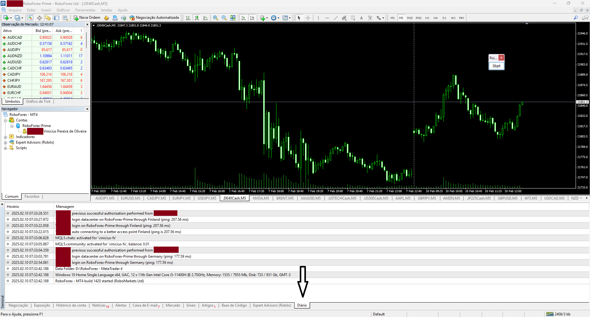 Anexe captura de tela do seu MT4 mostrando, inclusive, os eventos da guia Diário, como no exemplo abaixo: