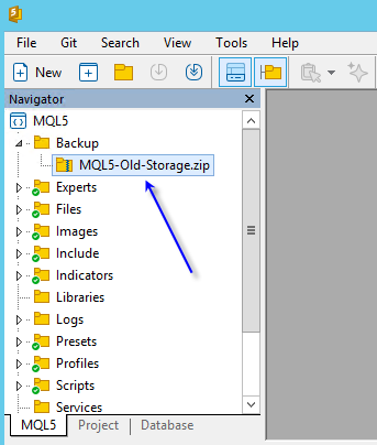 Não tenho certeza se isso ajudará ou não, mas vejo backup no MetaEditor-