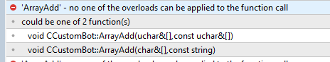 void ArrayAdd(uchar &dest[],const uchar &src[]) { int src_size=ArraySize(src); if(src_size==0) return; int dest_size=ArraySize(dest); ArrayResize(dest,dest_size+src_size,500); ArrayCopy(dest,src,dest_size,0,src_size); } //+------------------------------------------------------------------+ void ArrayAdd(char &dest[],const string text) { int len=StringLen(text); if(len>0) { uchar src[]; for(int i=0; i<len; i++) { ushort ch=StringGetCharacter(text,i); uchar array[]; int total=ShortToUtf8(ch,array); int size=ArraySize(src); ArrayResize(src,size+total); ArrayCopy(src,array,size,0,total); } ArrayAdd(dest,src); } }