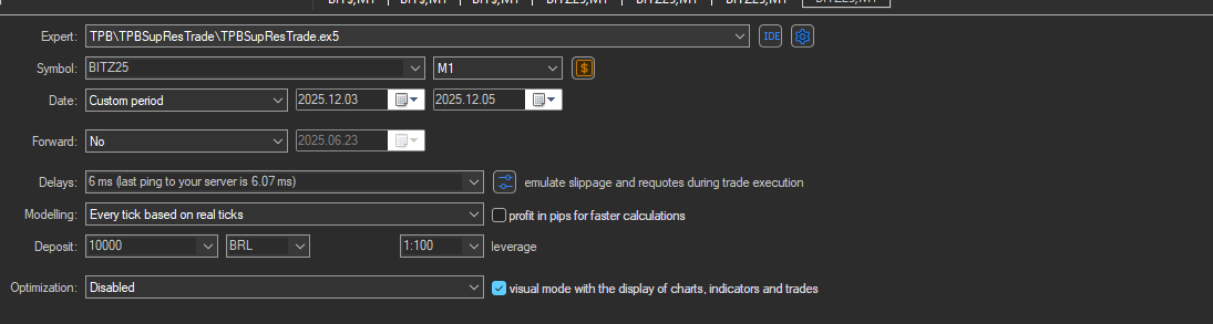 Estou tentando fazer o back-testing the um Expert em uma conta Demo ou Real na Corretora Clear no BITZ25, e estou tendo com comportamento bem anômalo: