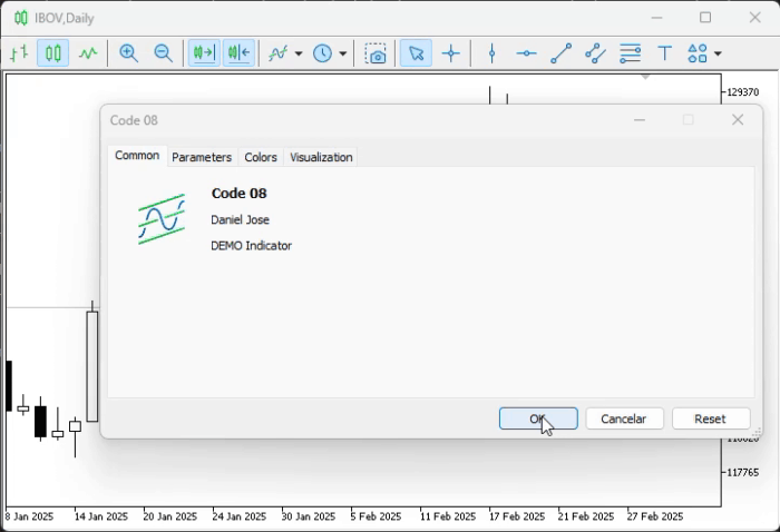 A parte complicada é entender que nem sempre você conseguirá fazer as coisas sem que antes entenda certos mecanismos e conceitos adotados no MetaTrader 5. Um destes conceitos foi explicado anteriormente e trata justamente do fato de que NÃO PODEMOS adicionar duas instâncias de um mesmo indicador em um mesmo gráfico. Isto é fato, e algo garantido pelos mecanismos internos presentes no MetaTrader 5. Porém, se algum argumento ou parâmetro de entrada do indicador for alterado, poderemos adicionar uma segunda instância no mesmo gráfico. Já que neste caso o MetaTrader 5 interpretará esta segunda, ou nova instância, na verdade não está ainda presente no gráfico.