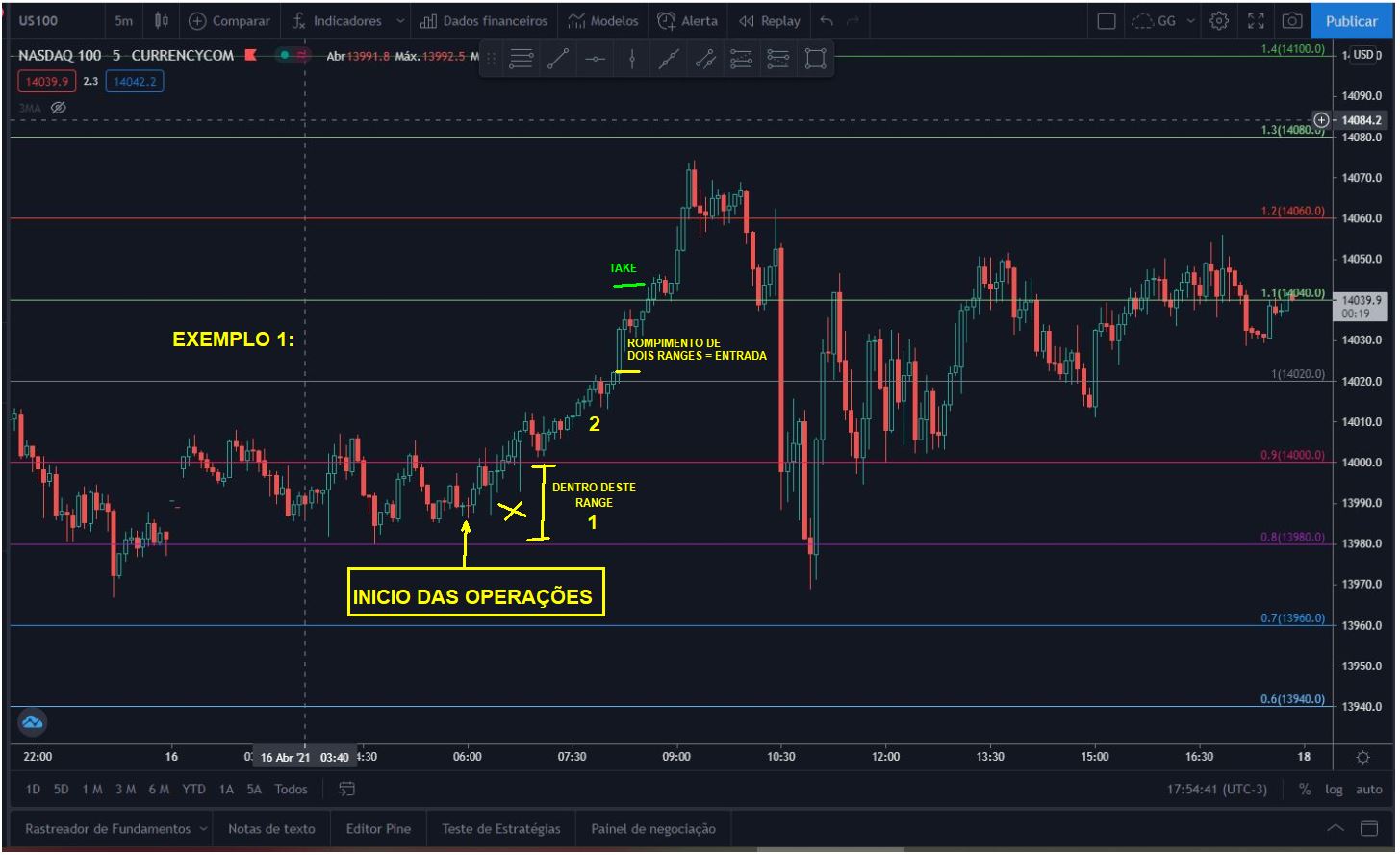 Após uma compra ou venda com take ou stop, é aguardado novamente o rompimento dos dois ranges.