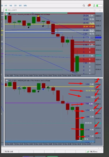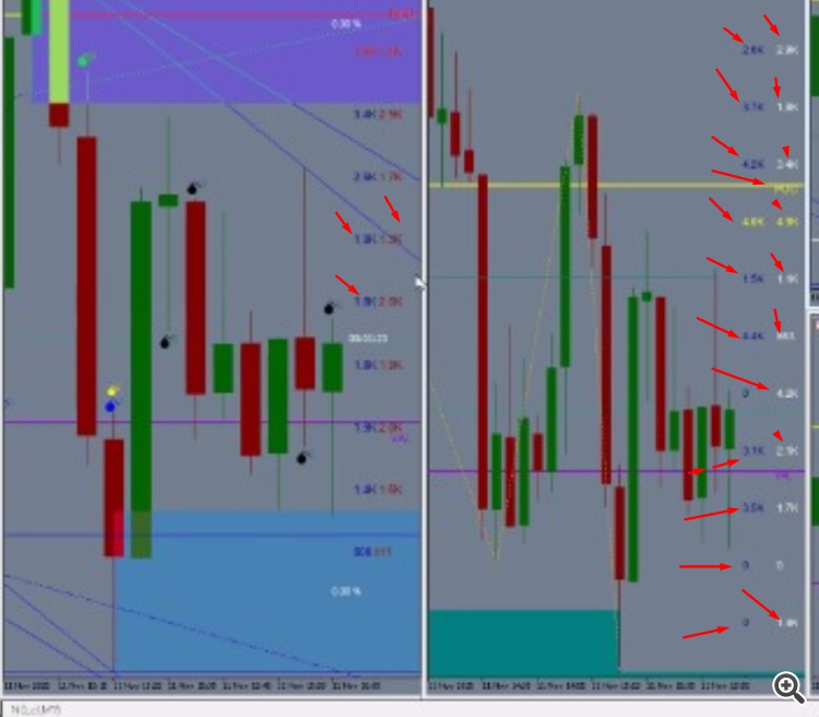 Ele mostra nessas regiões as quantidades de contratos comprado e vendidos tem as regiões de order block e FVG, poc tem essas bobinhas que quando o movimento naquele vai dar uma explosão elas aparecem antes confirmando