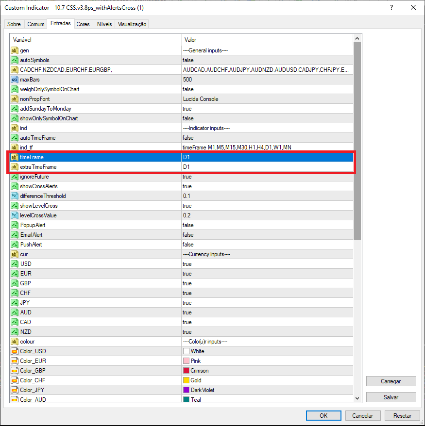 Time frame Dinamicos podendo mudar para M1/M30/H1 ou D1/W1/MN